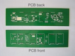 The PCB is a two layer, 0.062" thick board measuring 8.12" x 2.25". They were made by Advanced Circuits — about $140 for five pieces in five days with plated through-holes plus soldermask and silkscreen on both sides. A PDF of the artwork is available below.