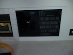 Blue displays to match those of the nearby AV equipment.